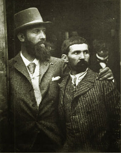 La cité d’Edelfelt date seulement d’hier ; on l’achève aujourd’hui ; demain elle sera célèbre. En montant chez lui, je lis à tous les étages plusieurs noms d’artistes, Dagnan-Bouveret, Gustave Courtois, des jeunes, eux aussi que les derniers salons ont mis en pleine lumière. [3]
