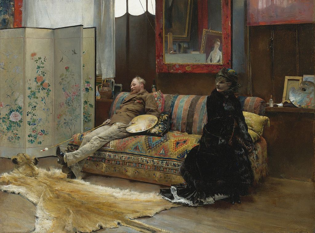 Si de nombreuses peintures de salons furent peintes avenue de Villiers, l’atelier servit aussi de cadre à des études informelles. Le peintre nordique consigna ainsi son étonnement devant une vue de Paris sous la neige, ou saisit des moments intimes, lorsque le modèle se détendait dans l’atelier.