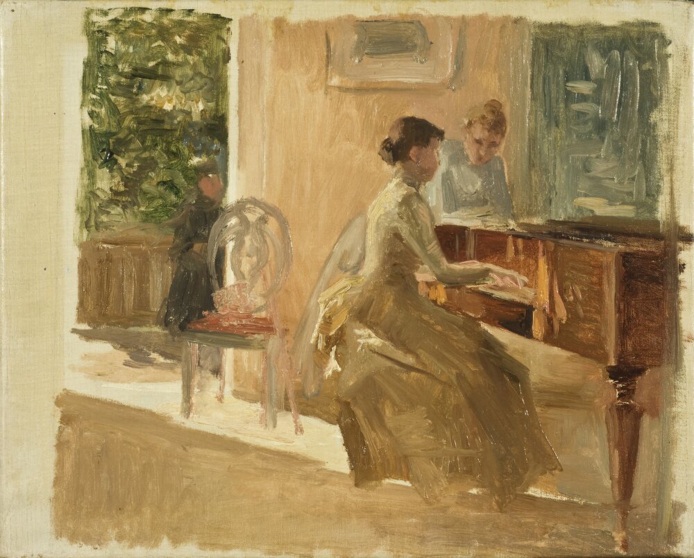 Le succès commercial de sa peinture allait inciter l’artiste à réaliser d’autres versions de figures féminines au piano. Dans les mois qui suivirent la naissance de son fils Eric fin 1888, dans l’incapacité de réaliser des commandes importantes, Albert Edelfelt réalisa une série de petits tableaux à Haikko reprenant le motif familier du piano, qu’il destinait au public mondain du salon des Mirlitons de 1889 (3).